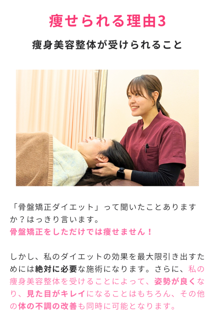 私は元々、美容整体に特化した施術(姿勢矯正や骨盤矯正)を行なっておりました。