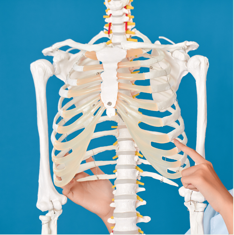 猫背や巻き肩などの不良姿勢をとり続けてしまうと、胸椎(=胸・背中あたりの背骨)や、肋骨の可動域が小さくなってしまいます。