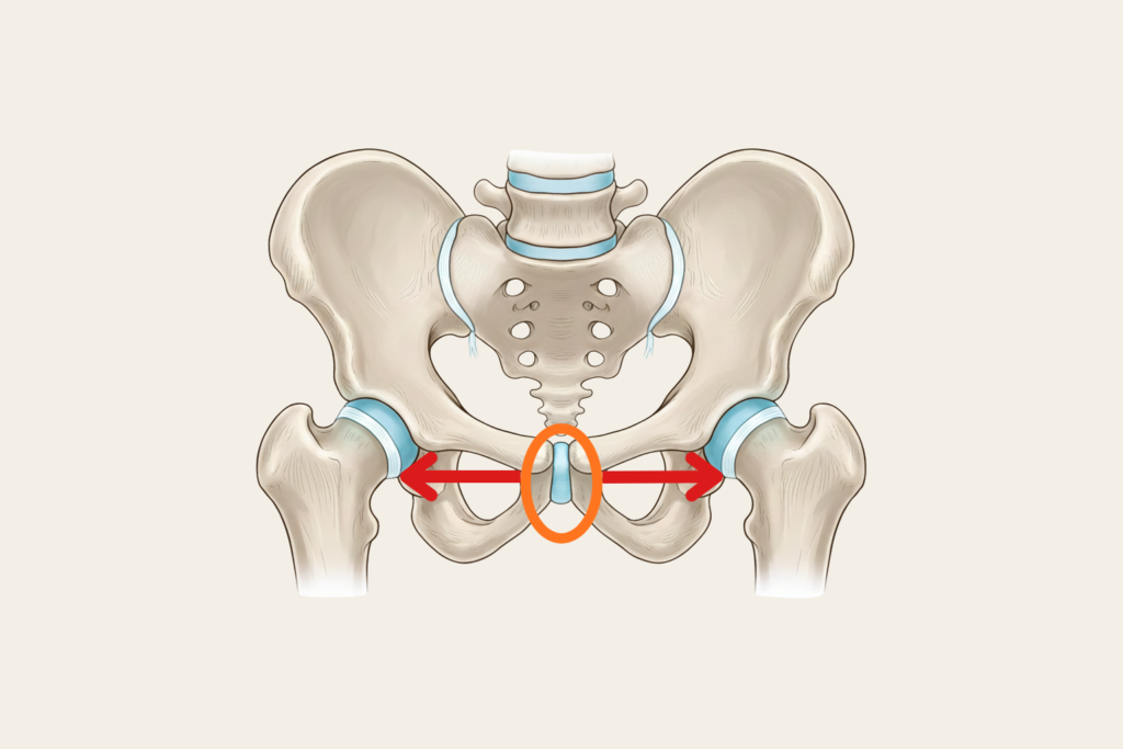 妊娠中に赤ちゃんの頭が骨盤内に下がってくることで、この繋がっている箇所に対し、内側から恥骨を押し広げる圧力がかかります。